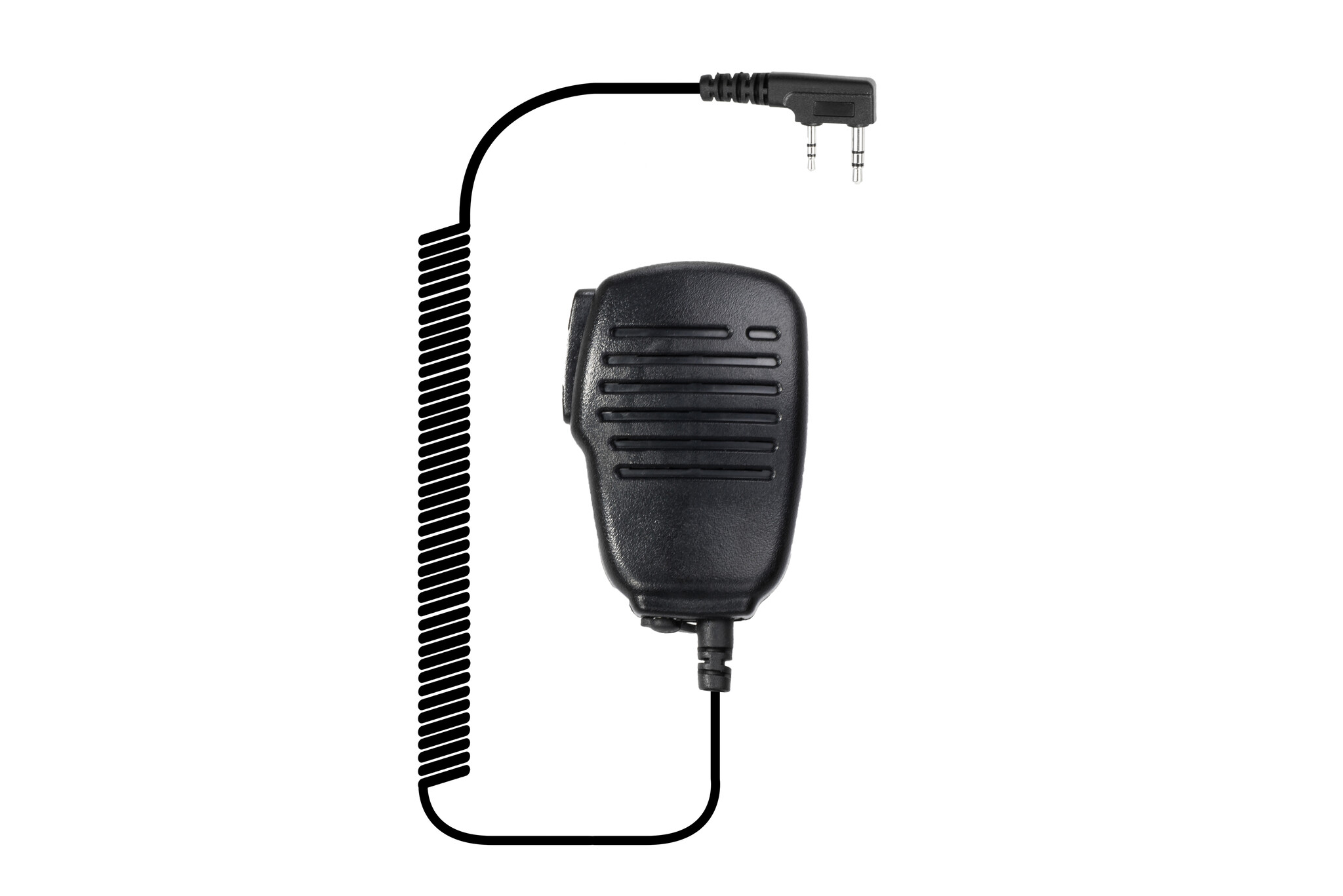 Handheld Speaker Microfoon met een 2 pins stekker welke compatibel is met Baofeng portofoons. Op de speaker zit een 3,5mm ingang om een koptelefoon of in-ear portofoon oortje aan te sluiten.