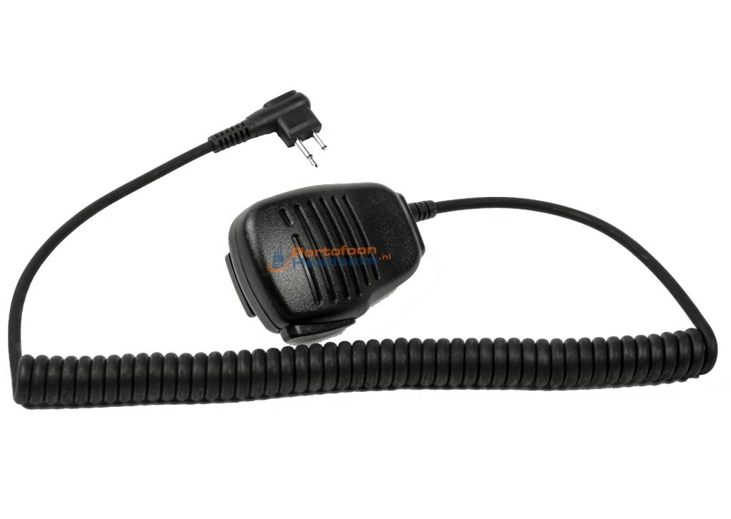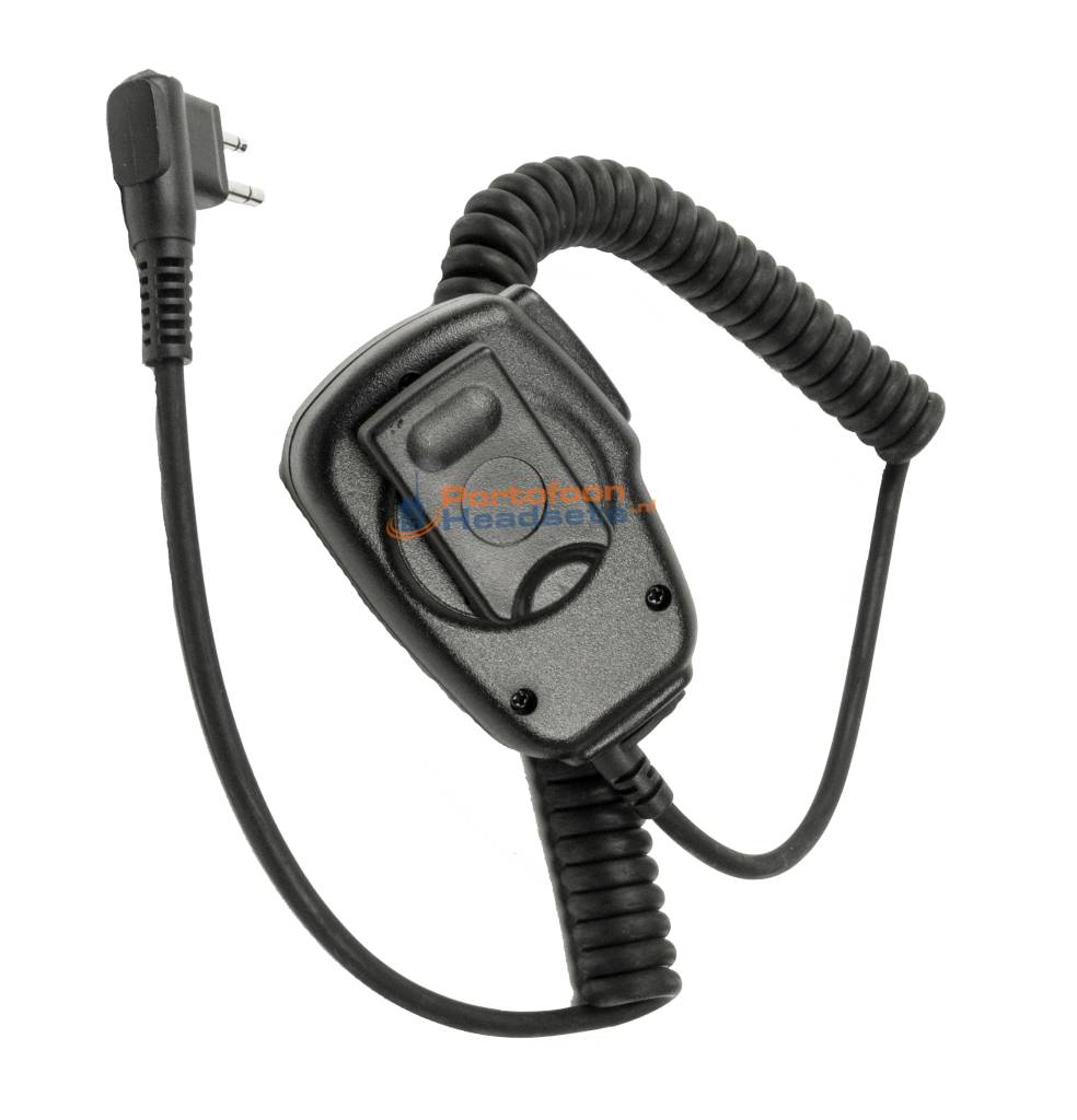 Handheld speaker microfoon met een 2 pins stekker compatible met de meeste Motorola portofoons. Op de speaker zit een 3,5mm ingang om een koptelefoon of oortje aan te sluiten.